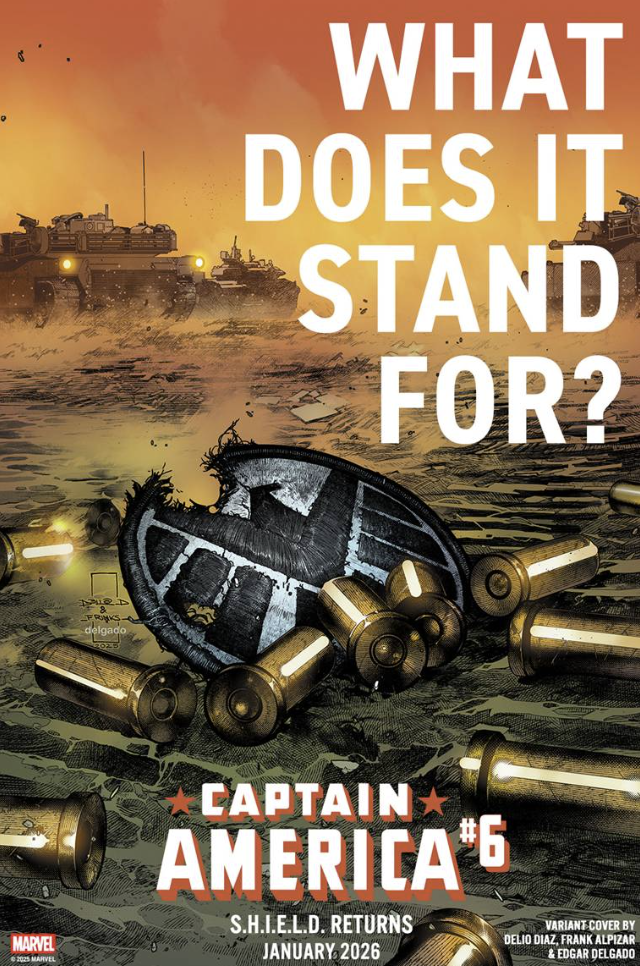 Last week at the Lucca Comics & Games festival, Marvel Comics Editor-in-Chief C.B. Cebulski and superstar writer Chip Zdarsky pulled back the curtain on the next arc of CAPTAIN AMERICA, one of the industry’s hottest ongoing titles. Launching in issue #6 this January, the new storyline will establish a bold new status quo for Steve Rogers and the greater Marvel Universe—culminating in a moment fans have been waiting years for… THE RETURN OF S.H.I.E.L.D.!